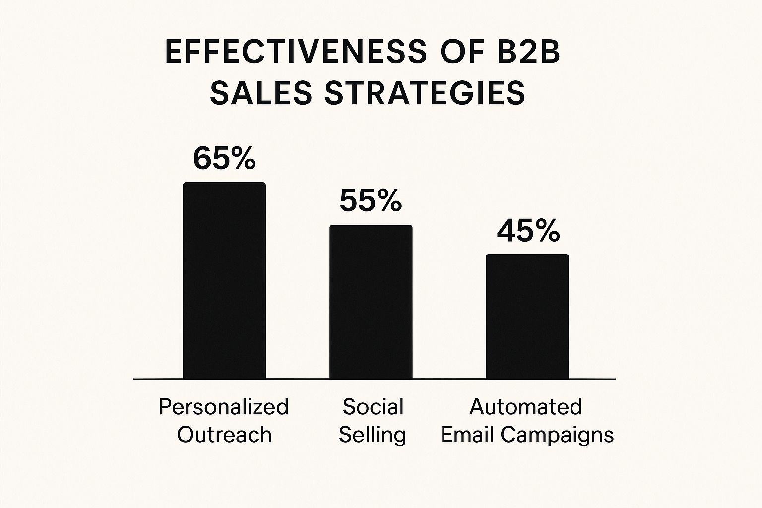 This infographic compares three B2B sales approaches: Personalized Outreach, Social Selling, and Automated Email Campaigns.
